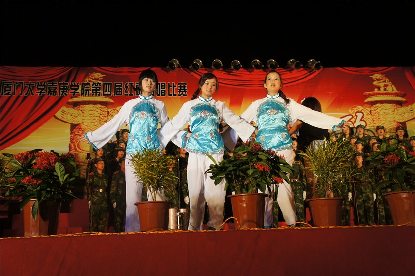 本次比赛中英语系虽然没有夺得任何奖项,但是我们确实是唱出了水平,赛出了风度。练习红歌的时候由于歌曲难度较大,同学们被分为两个声部。而对音乐一窍不通的男生们硬是学会了唱“低声部”,从一开始的声音参差不齐,到后来的洪亮有加,所有这一切努力都被大家记在心里。