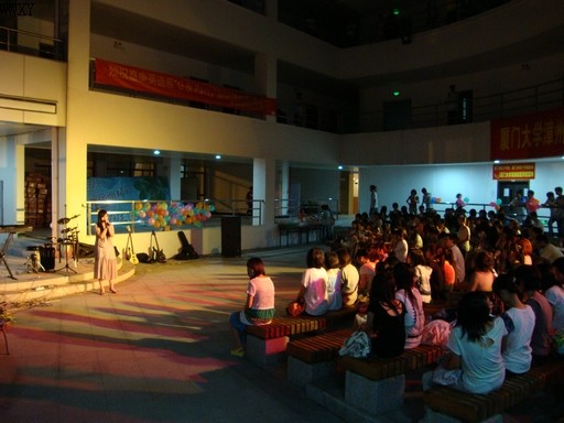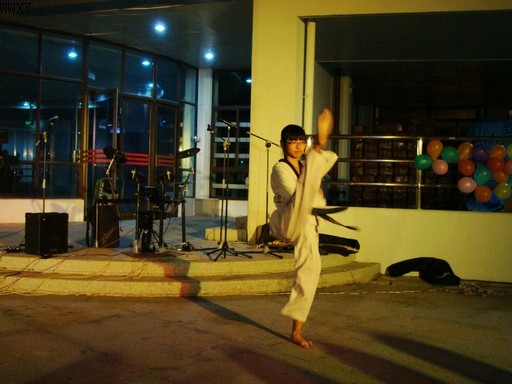 首先,英语系INSOMNIA乐队几首动感十足的歌曲掀开了派对的第一页“GO TO PARTY &ENJOY THE PARTY”。第二页,07级音乐系的学长为我们带来了劲酷的街舞。第三页,一首《雨爱》的抒情节奏勾起了学生们的无限情思。第四页,学生们玩起了小小的趣味的萝卜蹲游戏。第五页,印画的是一曲拉丁舞的倩影。接下来这一页,便是考验学生团队合作的激动人心的踩报纸游戏。还有“两个人的荒岛”,“浪漫牛仔舞”,“跆拳舞”“You Belong with Me”等节目,翻开了派对晚会的一页又一页,飞出了劲歌热舞,飞出了欢声笑语,飞出了英语系大家庭欢迎新成员的热情喜悦。