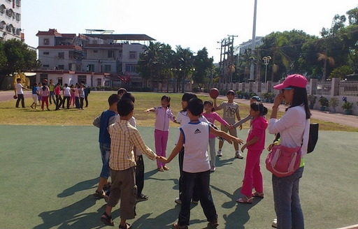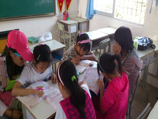 课堂上,英语系的7名志愿者为小学生们认真讲解,从单词到句子翻译,在到课后习题的讲解,志愿者们都十分有耐心。课间十五分钟的休息,志愿者们与孩子们一起玩游戏,打篮球,玩的不亦乐乎。无形中,他们建立起了深厚的感情。