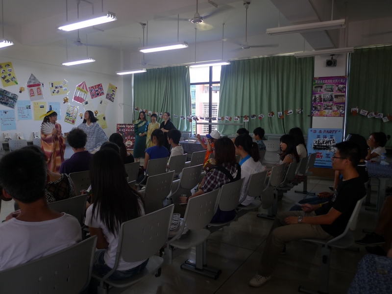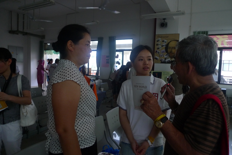 为了让远道而来的家长更好的了解英语系的信息,英语系特设了上午、下午两场英语话剧演出和师生互动环节,邀请来了英语系主任杨昆老师、外教Stephen Ling与Michael特到现场助阵,并为新生与新生家长一一解答。英语系的学子则站在门口热情的迎接学生和家长,为学生与家长提供可乐、花茶、橙汁等饮料,积极为各个来访的学生与家长介绍英语系的师资、特色以及学生活动等信息。更有角色扮演的同学纷纷被要求合影留念,不仅赚足眼球,更为英语系的宣传推波助澜。