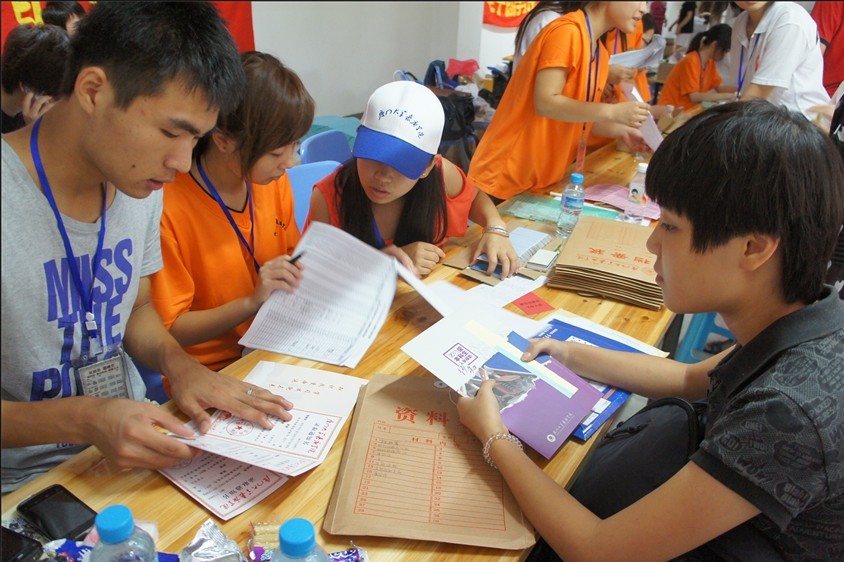 在注册点的同学们亦是一丝不苟的专注于为新生服务,耐心的解答他们的疑惑,并详尽的以自己所能来帮助他们熟悉这个全新的美丽的却也是完全陌生的校园。