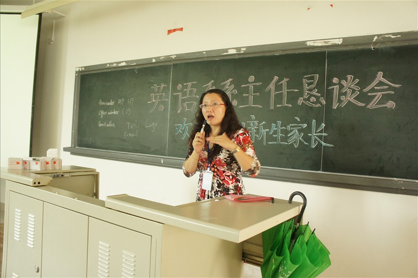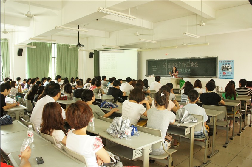 接着杨昆老师介绍了英语专业的培养目标和教学设施,再从专业特色方向、小班教学、国际合作办学三方面详细介绍了我系的特色教育。那些鼓动人心的成绩,让在座的家长各个都面露喜色。
