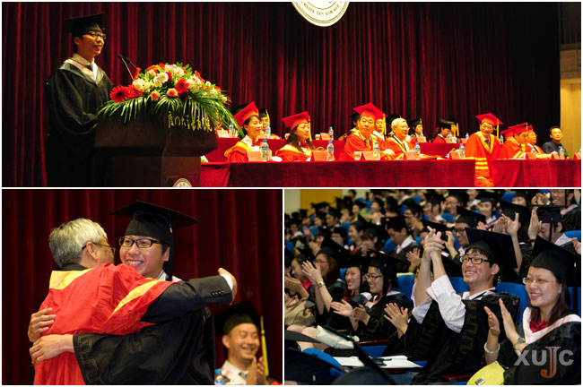 四年前我们轻轻地来了,四年我们又多了很多自豪的资本。这里有亚洲最豪华图书馆,那是我们避暑的港湾!这里有艾利斯顿的浪漫,多少次我们一起抗击风雨!这里有全国最豪华的宿舍,多少次我们彻夜不眠卧谈到天亮!这里有整洁高雅的食堂,提供着免费的米饭!这里有充满传说的马路,我们骑着随手可得的小绿小黄来来往往!这里我们见证了很多第一次,也经历了无数的第一次,今天我是多么想多来几个再一次啊!