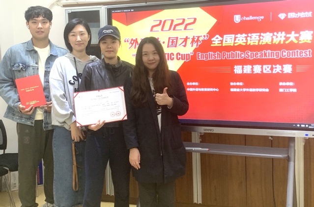 我校学子参加2022年“外研社·国才杯”全国英语演讲大赛网络赛场及地面赛场,成绩喜人。“外研社·国才杯”大学生英语演讲比赛以“China’s Wisdom for the World(构建人类命运共同体:奉献给世界的中国智慧)” 为题,引导参赛选手展示文化自信,体现青年担当。全国网络赛场共有来自676所院校的4196名选手参与,我校20级国际商务学院的戚迹同学入围全国150强,晋级网络赛场决赛后获得一等奖。地面赛场的省级决赛则由于突发疫情,改为线上进行,我校21级环境科学与工程学院的王正恩同学和19级国际商务学院的陈思宁同学分获二、三等奖。